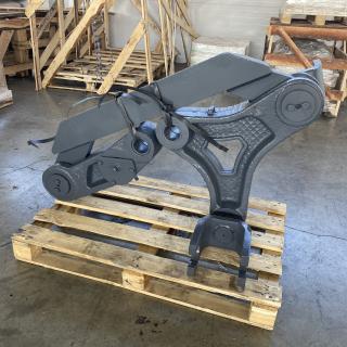 Подвеска тяговой рамы ДЗ-98.30.00.000 состоит из различных вилок крепления гидроцилиндров и рычагов. Последние соединяются поперечной тягой для одновременного их движения. Тот факт, что задняя часть тяговой рамы подвешена на трех гидроцилиндрах, говорит об обеспечении фиксации отвала в нужном положении. Передняя же соединена с головкой рамы автогрейдера.
