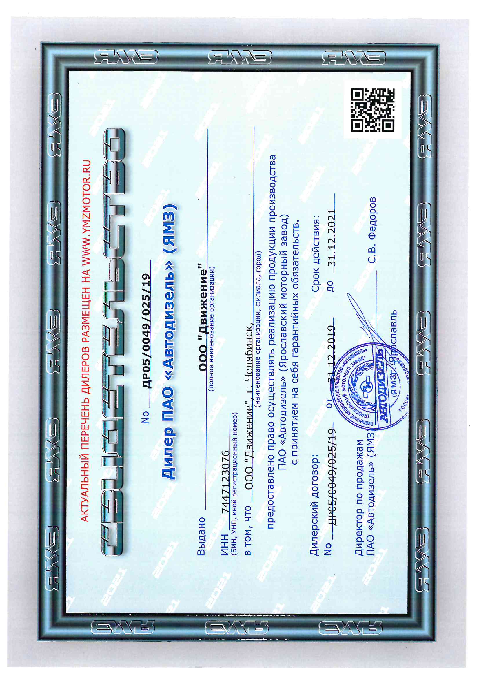 Официальный дилер ПАО "Автодизель" (ЯМЗ), 2021 г.